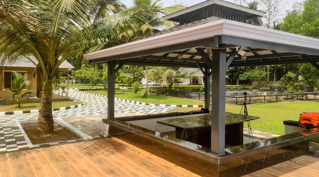 Our modern Gazebo, seating up 12 to 15, is perfect for intimate meetings by the water's edge.